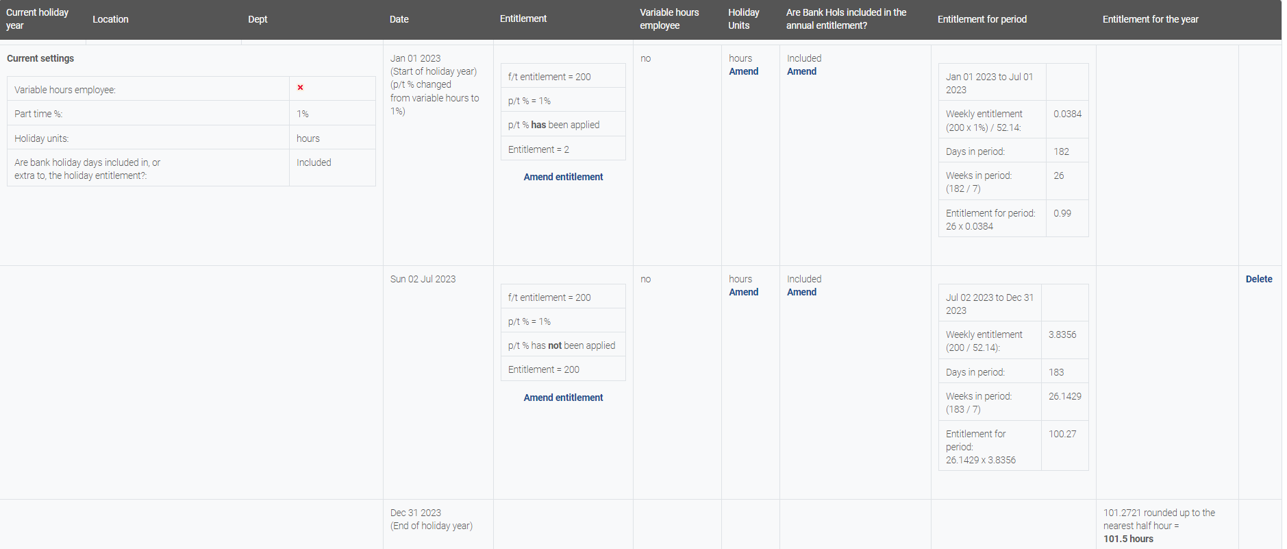 Whenever this occurs, a new entry is created in their holiday entitlement record and their annual entitlement is recalculated. These distinct parts that make up the entitlement are called ‘Holiday Periods’.