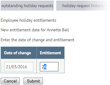 Against the relevant employee’s record enter the date you would like the new entitlement to start and press Submit.
